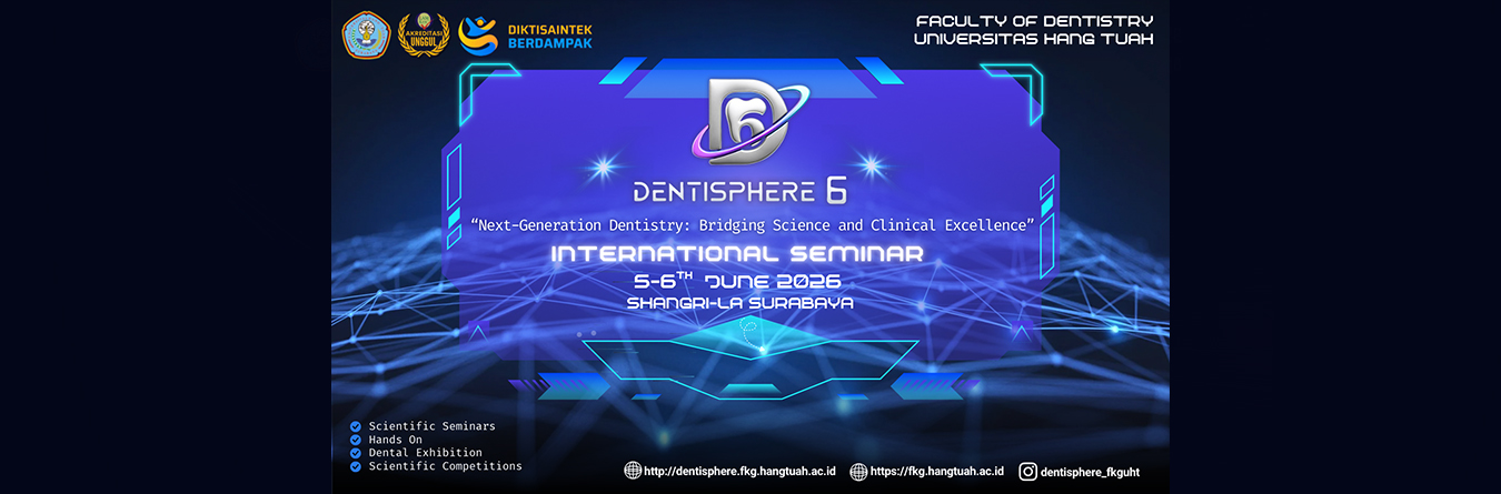 DENTISPHERE (Dentistry Update and Scientific Atmosphere) is an international seminar and dental exhibition which held by Dentistry Faculty of Hang Tuah Surabaya University.